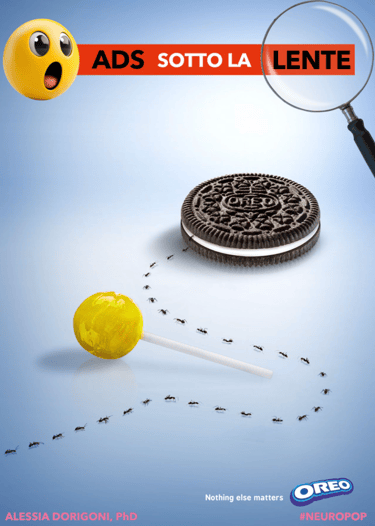 Formiche che ignorano il lecca-lecca per andare dritte sull’Oreo. Semplice? No, geniale. 🧠 Comparazione implicita, rinforzo sociale ed evitamento: scopri i trucchi psicologici dietro questa pubblicità.